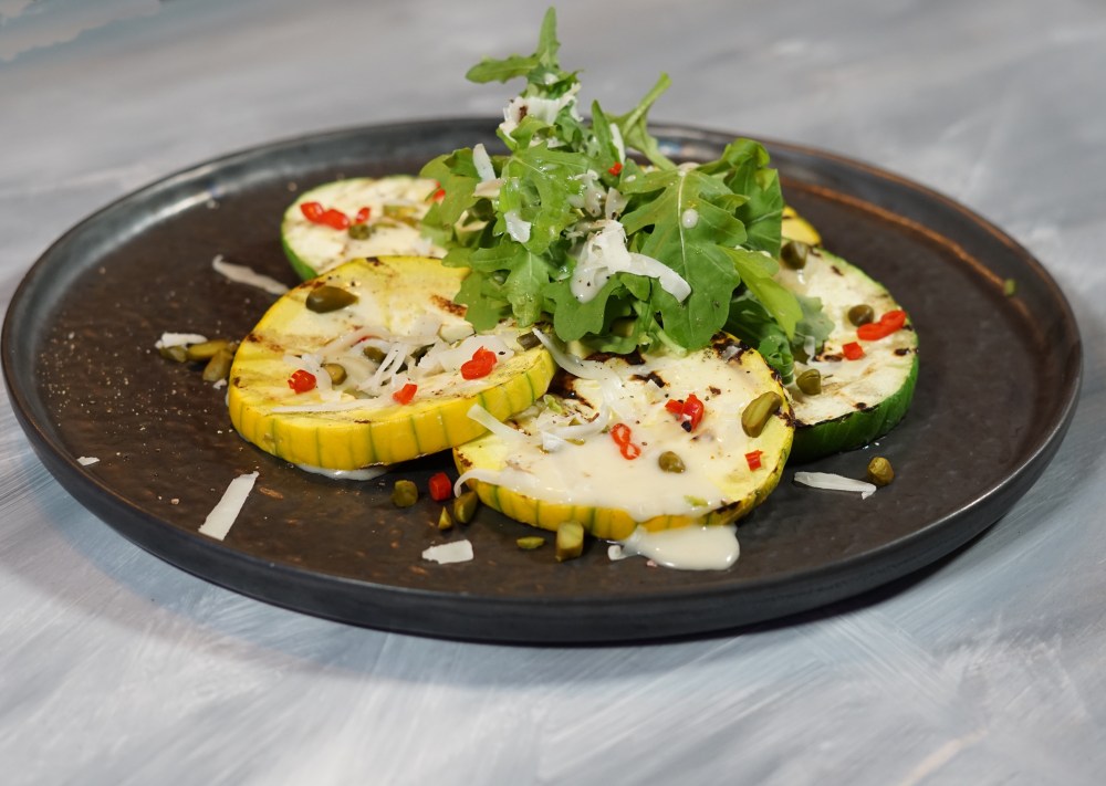 Zucchiolo kann sowohl roh als auch gegart verwendet werden. Ich habe mich dazu entschieden, die Zucchiolo zu grillen und mit frischem Rucola zu servieren.